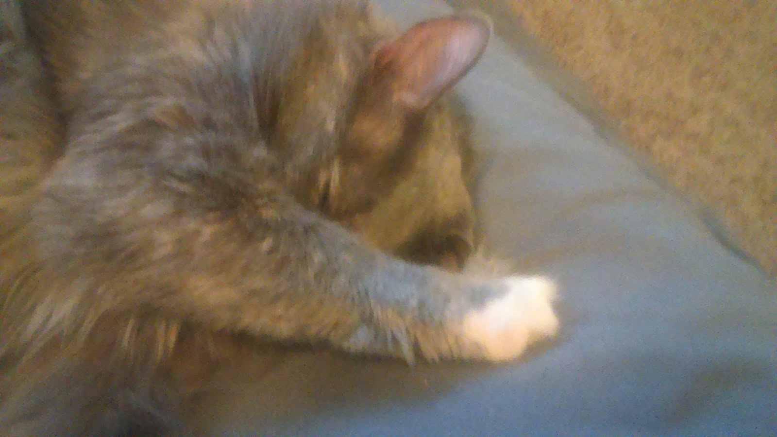 It's kind of blurry because Cats! But I finally got a full face picture of Etta. She is the worst when it comes to photo ops.She's camera shy like me!
