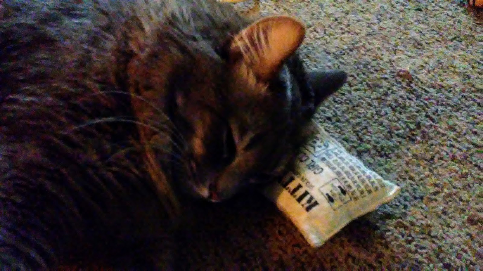 Here's my little seat thief Joan! Every time I get up for a second, she is all over my chair. And just look how sweet and cozy she is. I never have the heart to move her. She rarely sleeps in the red chair or chaise gifted to me by my neighbors. I'm sure it's because I rarely sit in them!